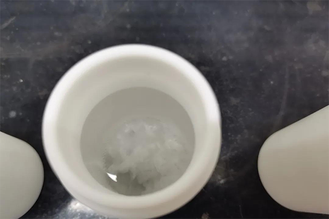 在恒溫220℃馬弗爐中消解1小時;取出冷卻后擰開蓋子,在實(shí)驗電熱板中蒸至近干,約2mL,用5mL硝酸和少量水分清洗消解罐,出現(xiàn)白色結(jié)晶物,再加入5mL硝酸于220℃電熱板消解15min,蒸至體積小于20mL;